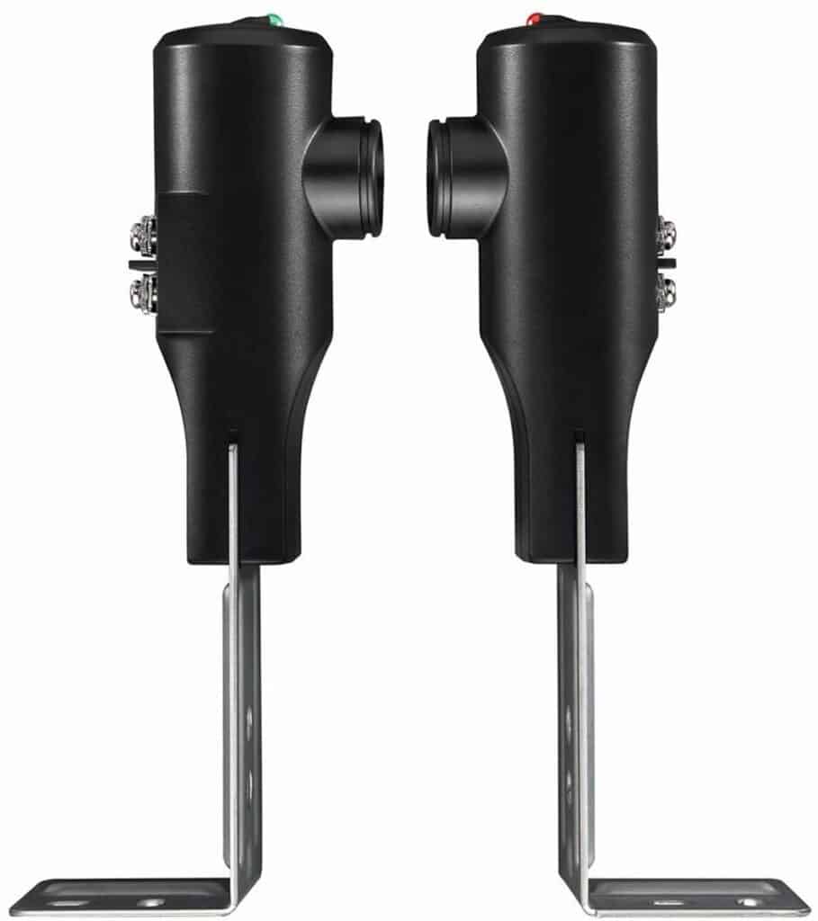 How they work:When the infrared beam is unbroken (both sensors aligned and clear), the green LED glows steady, and the door operates normally. When something breaks the beam—a person, pet, car, or even a spider web—the door immediately stops or reverses to prevent injury or damage.